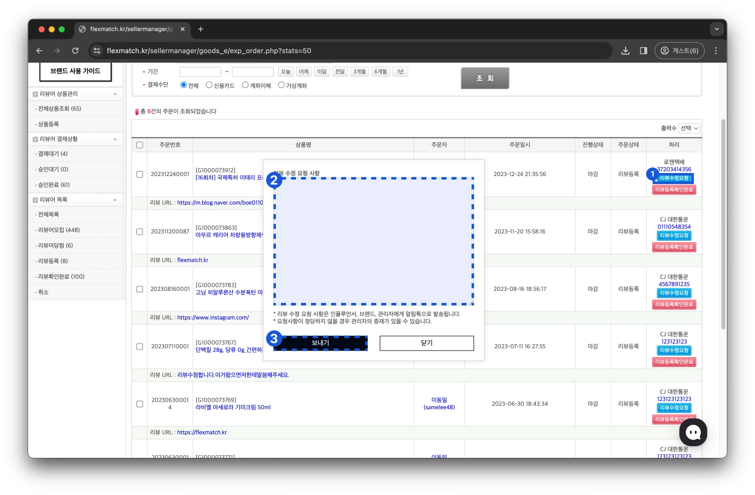 # 리뷰수정요청 클릭