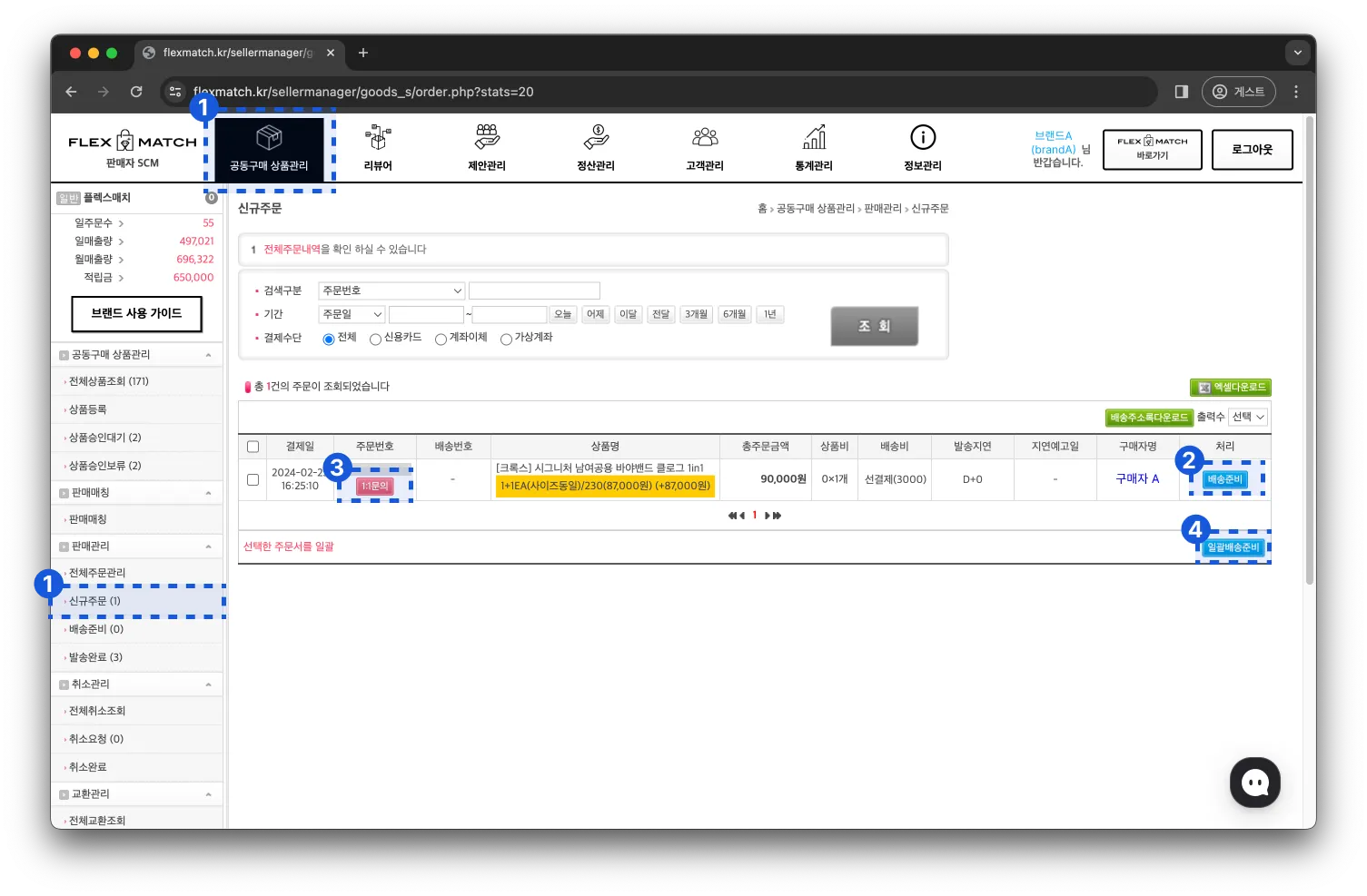 신규주문 페이지에서는 새로 접수된 주문들을 관리할 수 있는 페이지입니다.