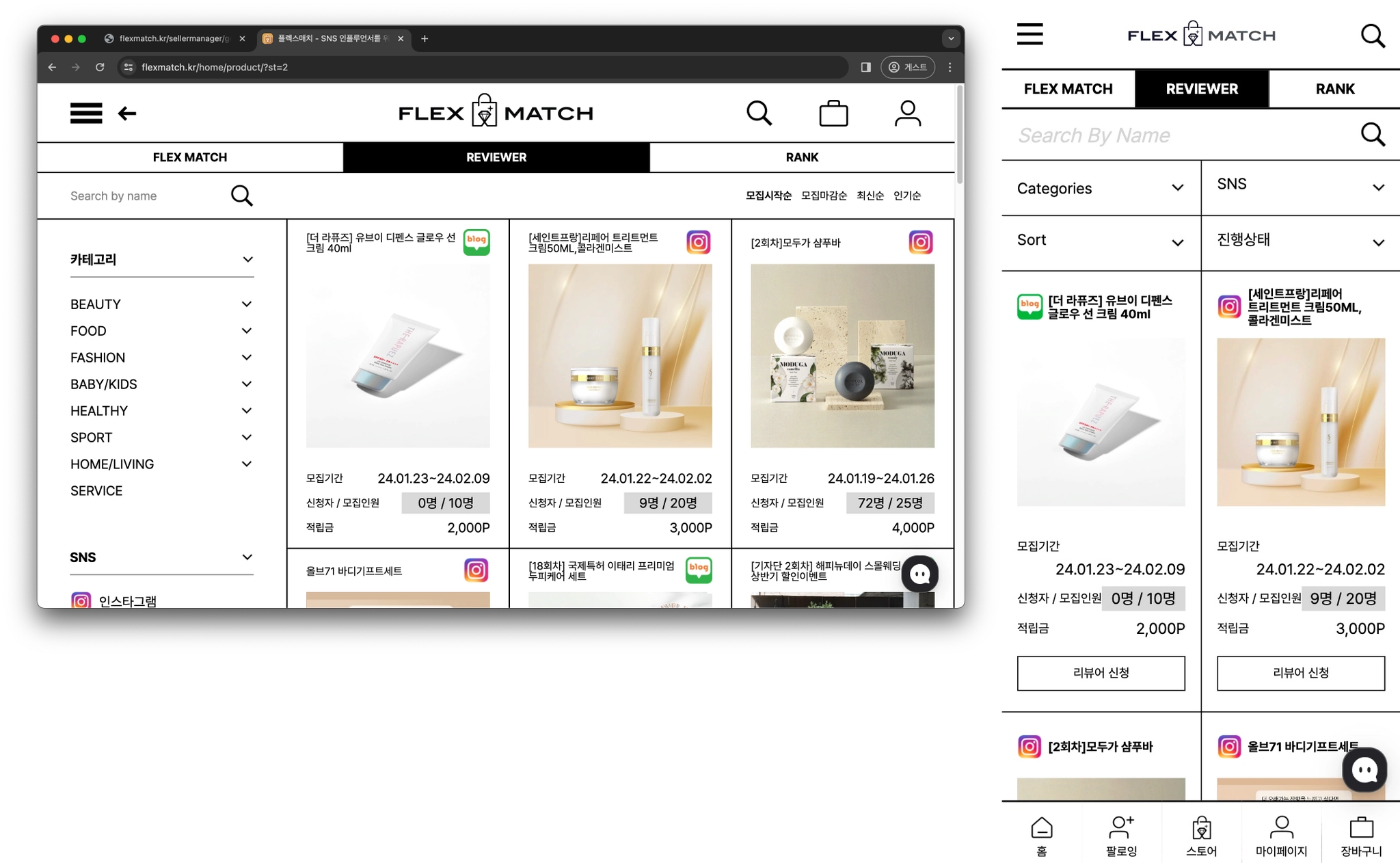 리뷰어 상품 등록을 하면 플렉스매치의 크리에이터가 상품을 신청하고 리뷰할 수 있어요!