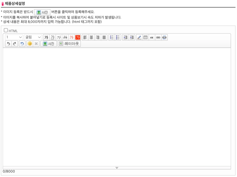 7. 제품상세설명 입력