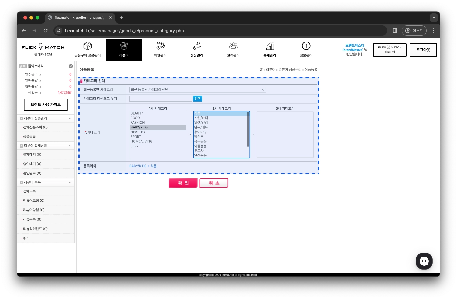 등록할 상품의 카테고리를 선택합니다.