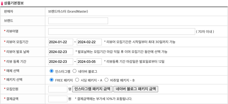 모집인원 | 리뷰어 모집인원 |