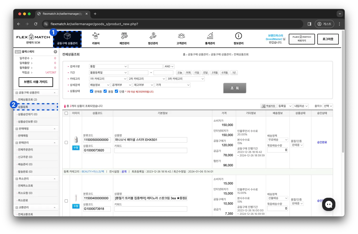 상단메뉴에서 “공동구매 상품관리” 클릭