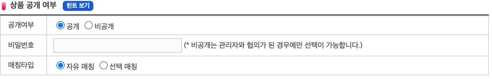 4. 상품 공개 여부 선택