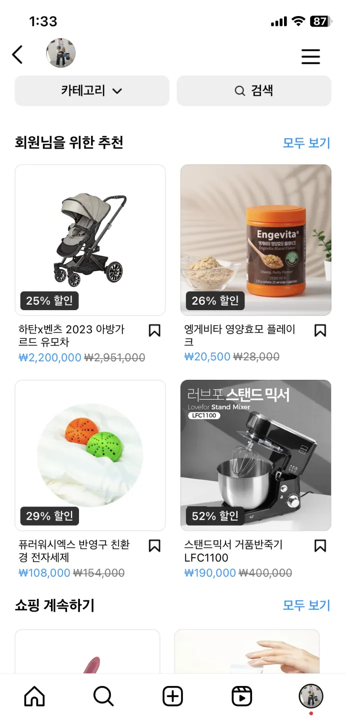 설정이 완료됐다면, 인스타그램에서 shop 기능을 사용할 수 있습니다.