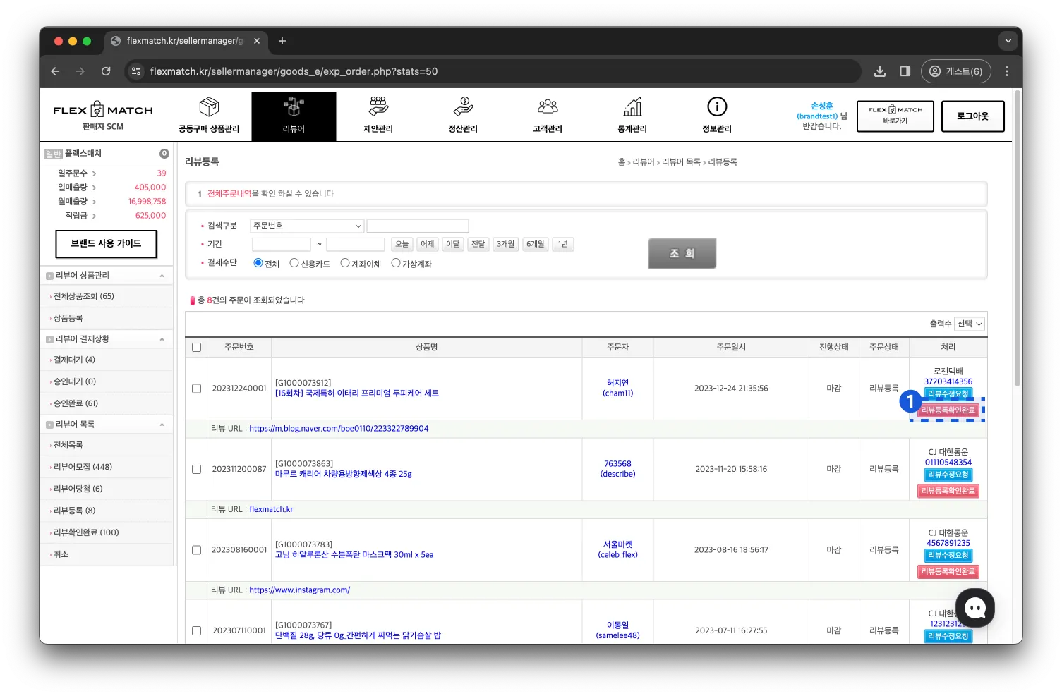 광고주는 등록된 리뷰를 확인하고,