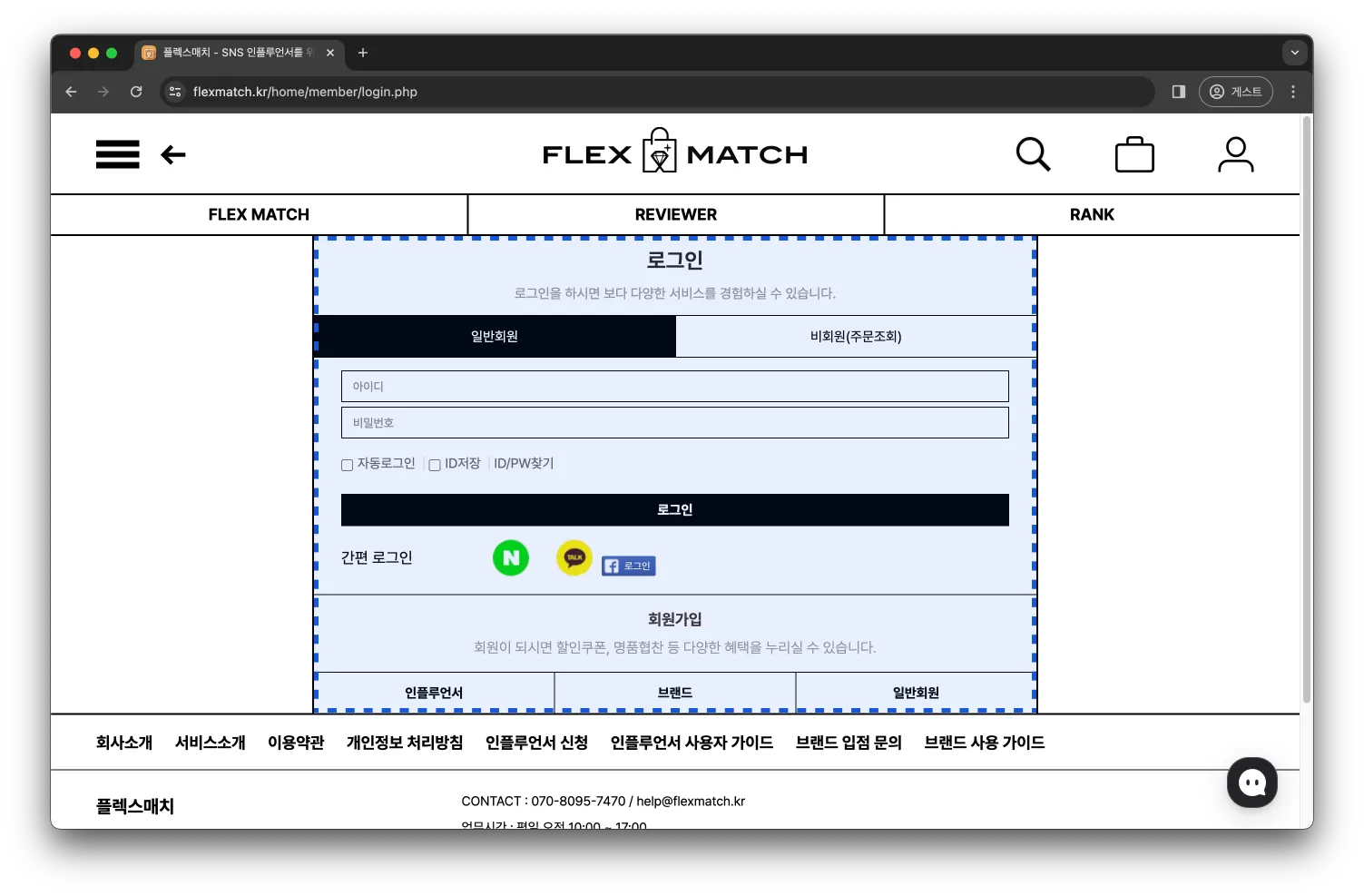 입점이 확인되면, 플렉스매치의 웹사이트에 접속해서 로그인시 자동으로 판매자 사이트로 연결이 됩니다!