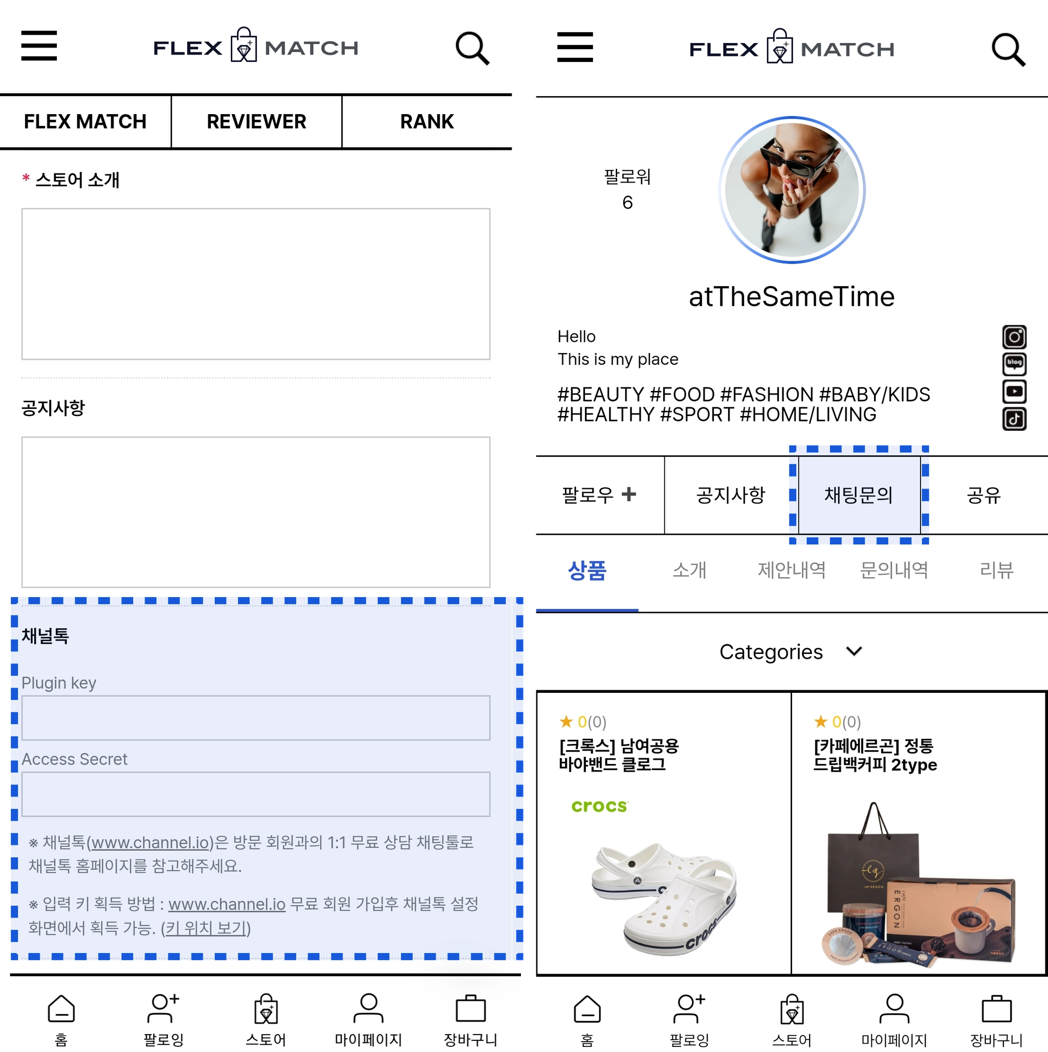 플렉스매치 로그인 후 마이페이지 > 스토어 설정을 들어갑니다.