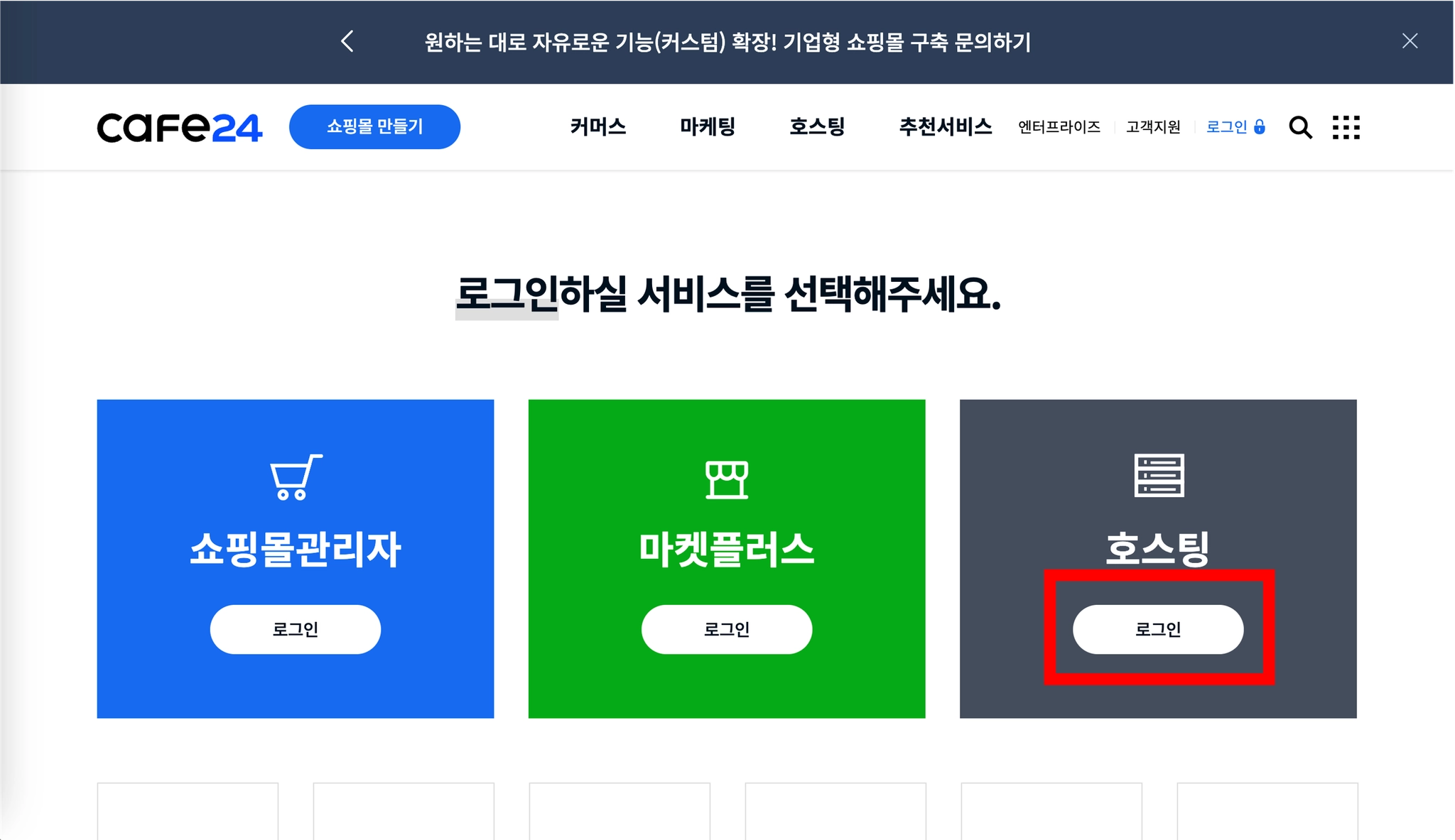 Cafe24 접속 후 로그인 클릭