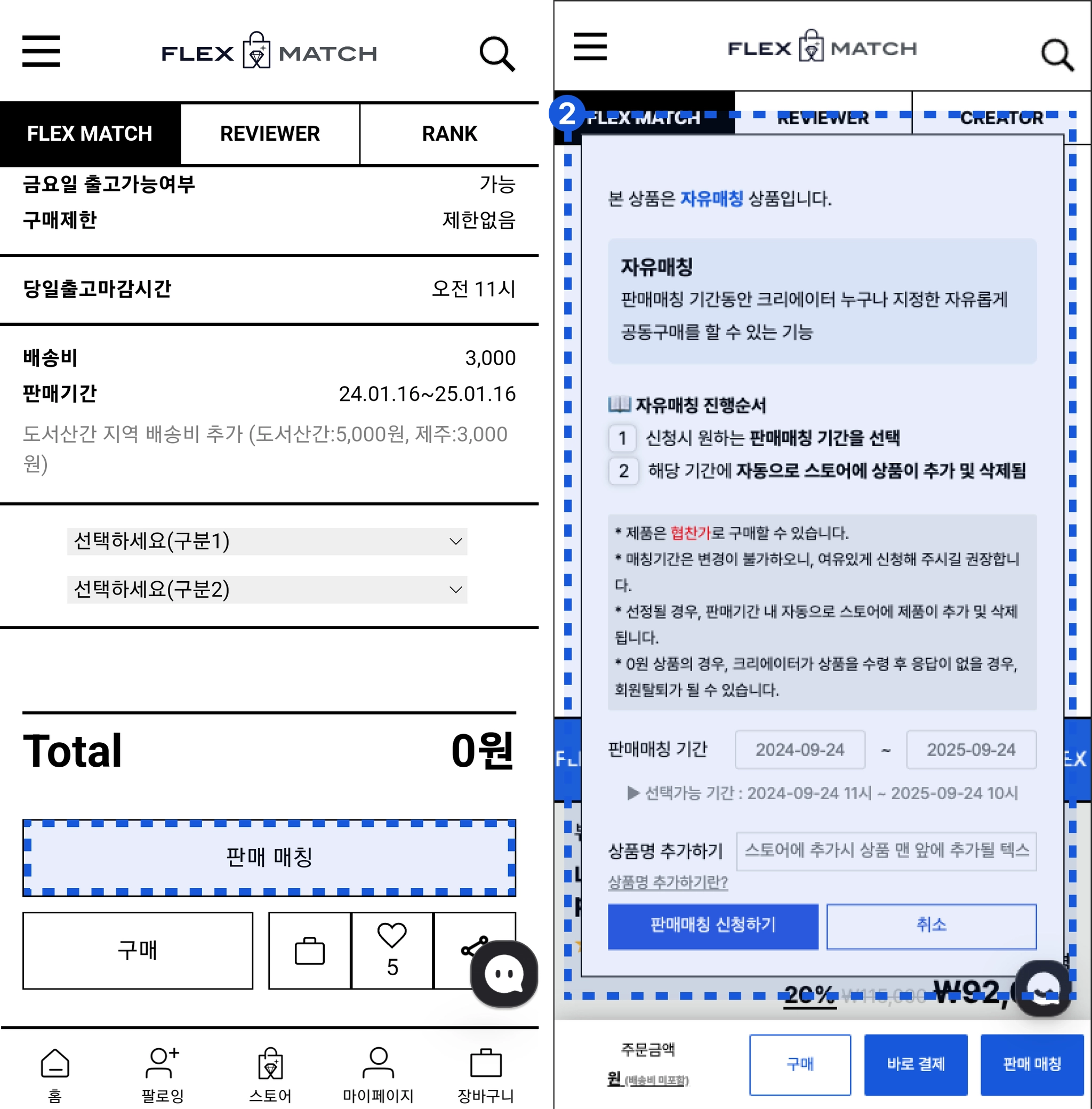 크리에이터님이 원하는 “판매매칭 기간”을 선택합니다.