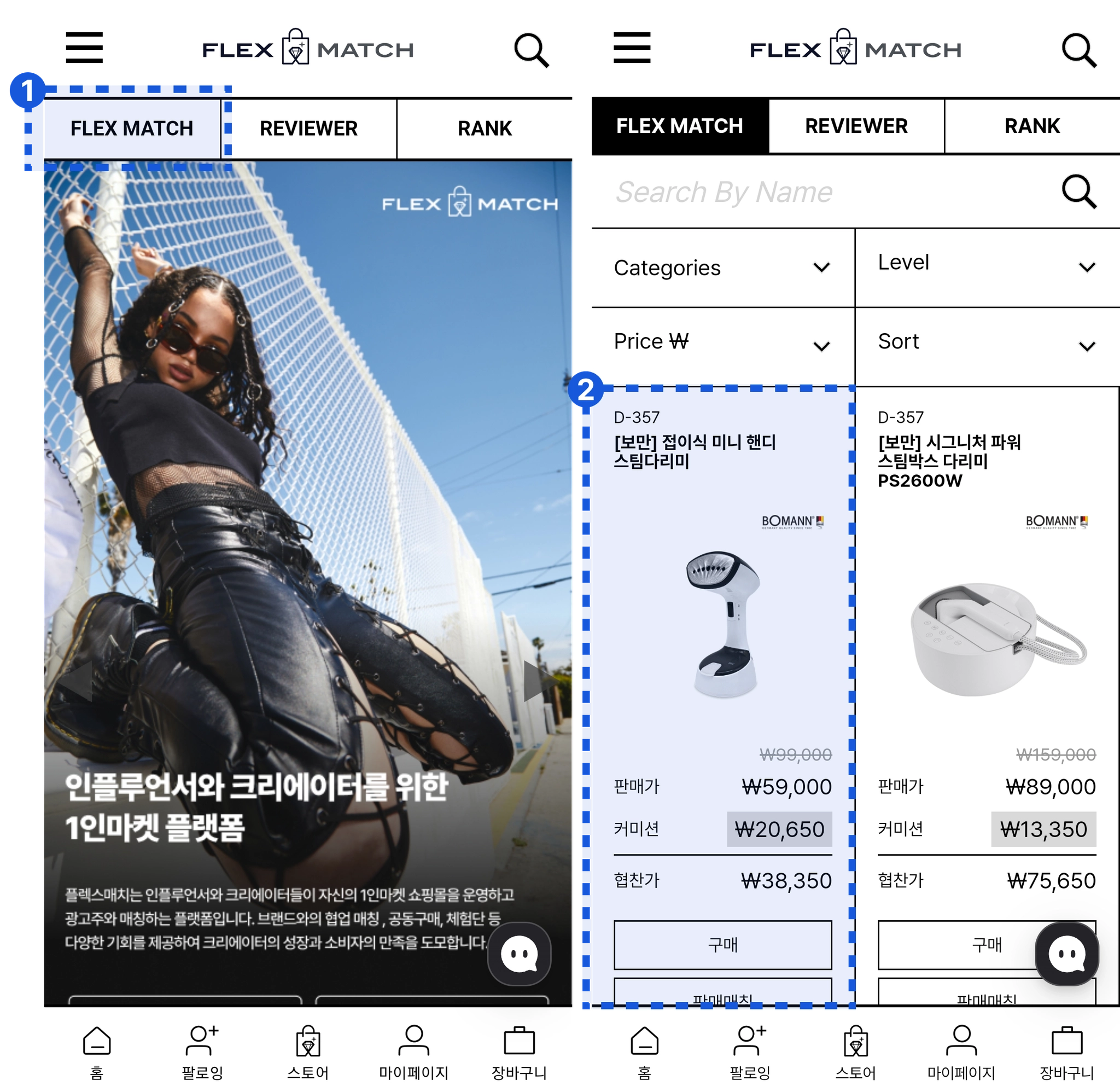 플렉스매치의 크리에이터 회원이라면 상품을 자유롭게 매칭할 수 있어요