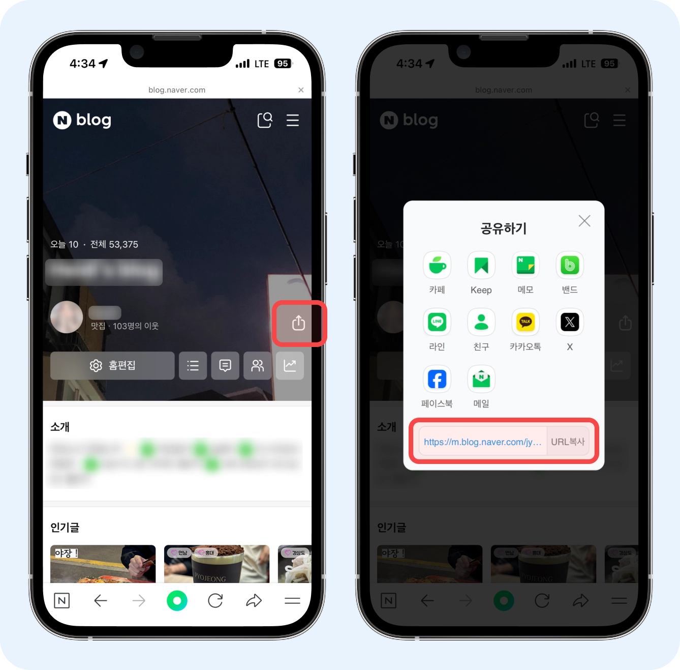 내 네이버 블로그에 접속 후, 프로필 우측의 공유
