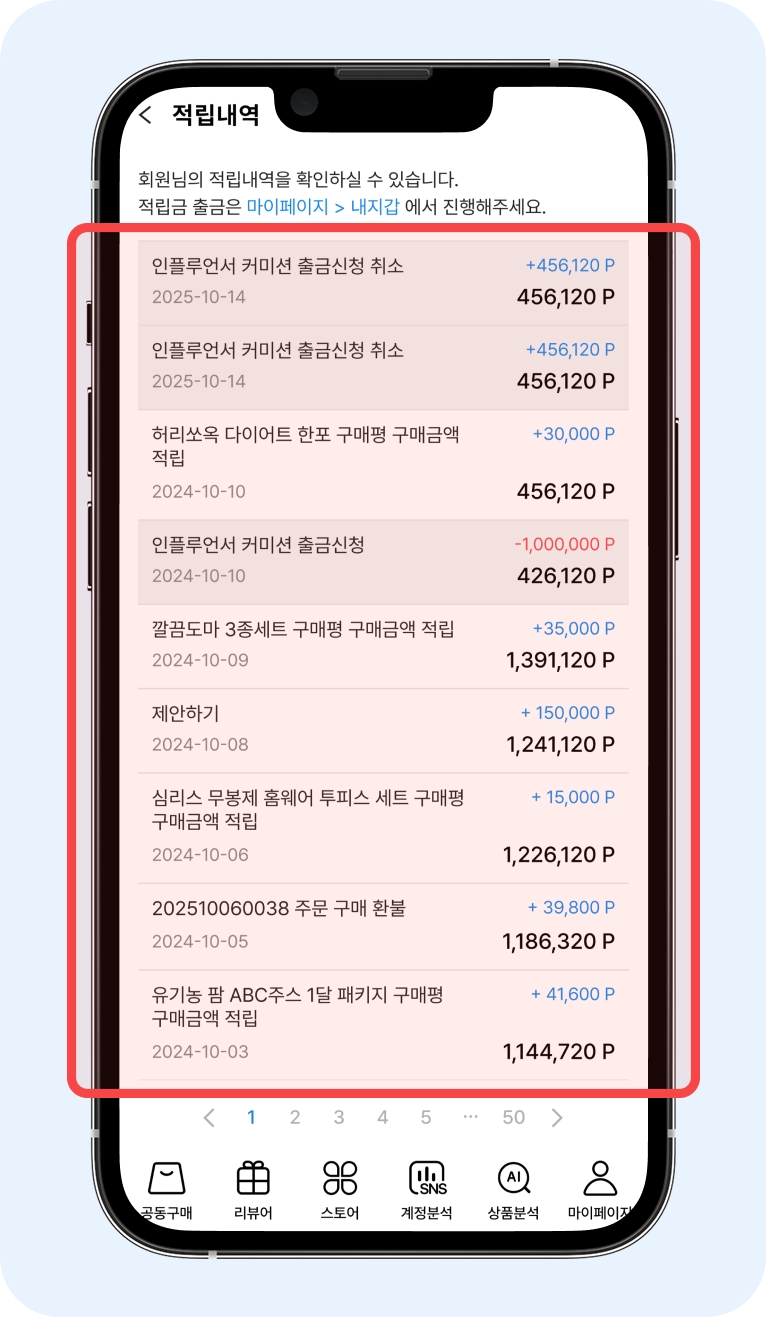 적립내역에서는 적립금 관련 모든 내역을 확인할 수 있어요.