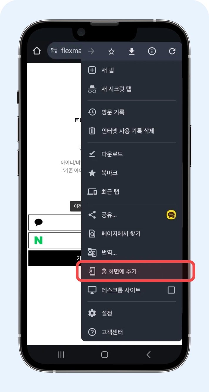 3. 홈 화면에 추가 터치