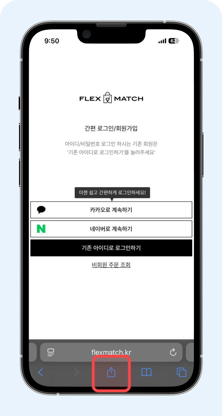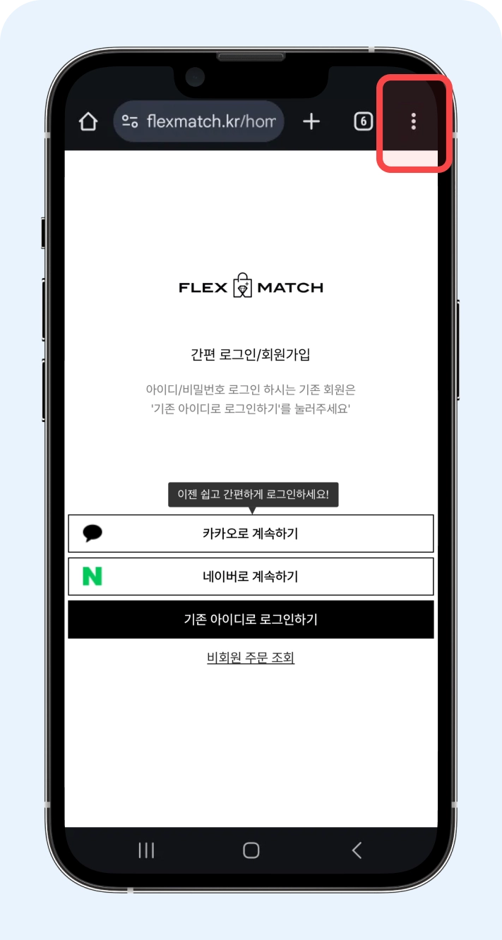 Chrome, Safari 등의 웹 브라우저를 통해 플렉스매치에 접속해 주세요.