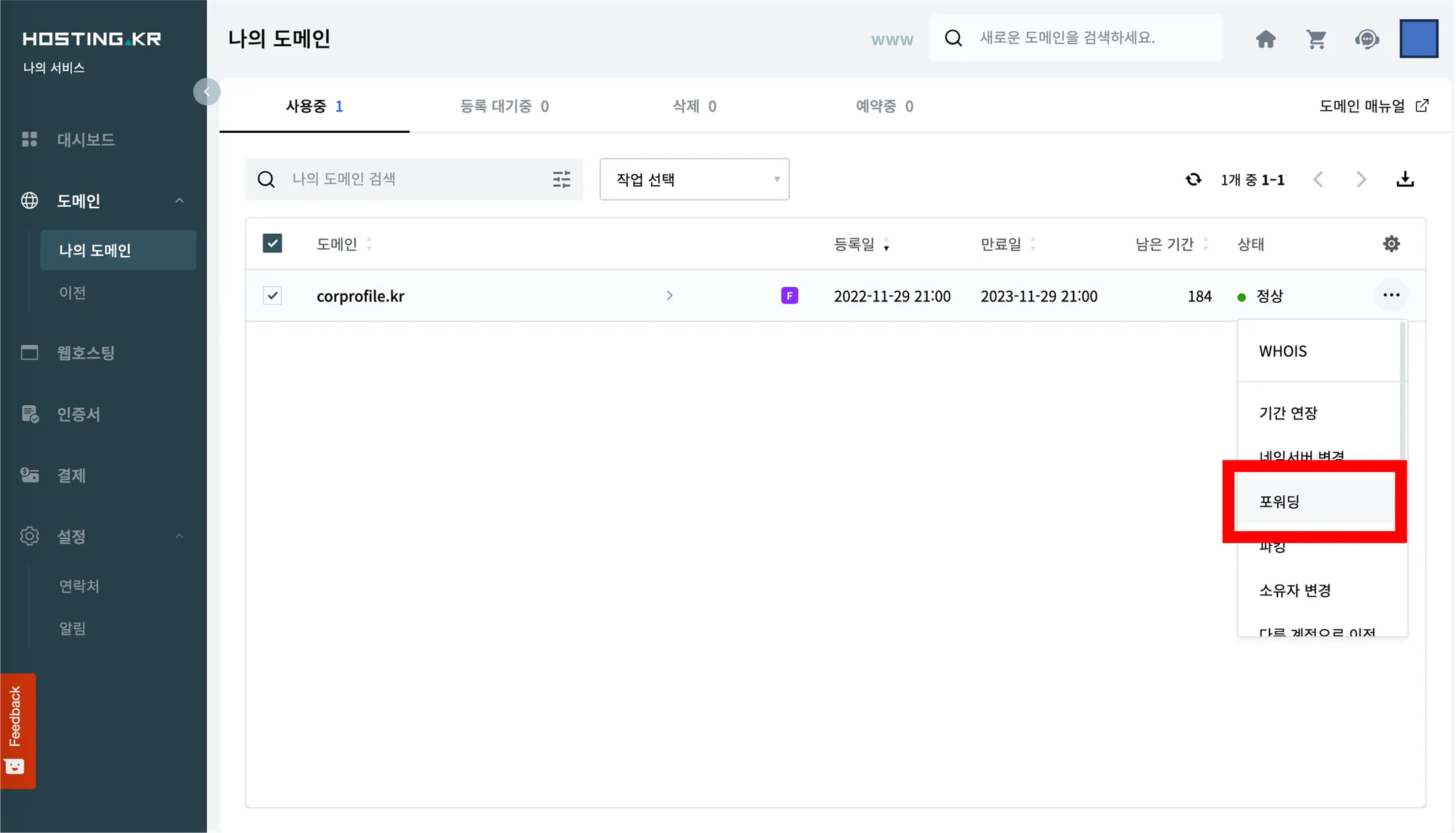 (호스팅케이알를 통해 도메인을 구매한 경우에만 가능합니다)