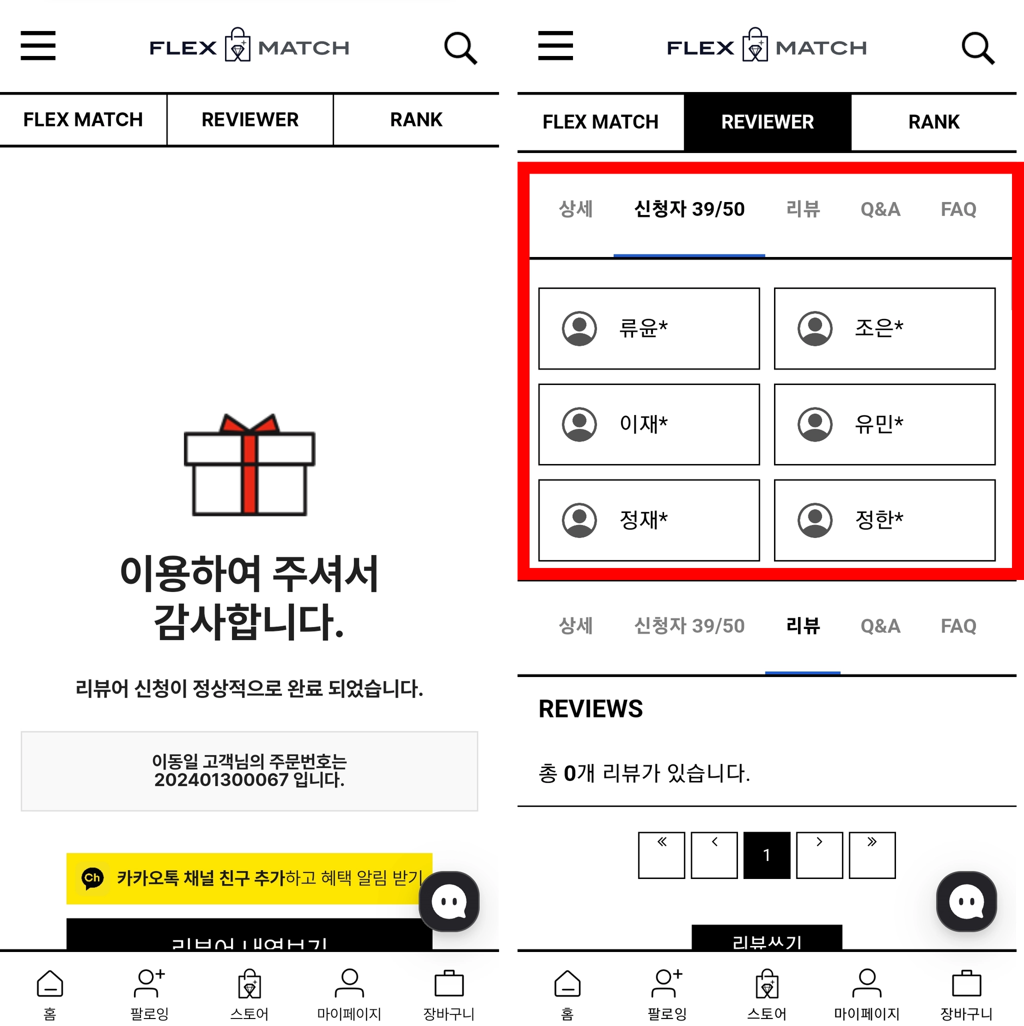 플렉스매치 로그인 후 상단에 메뉴 중 REVIEWER를 클릭합니다.