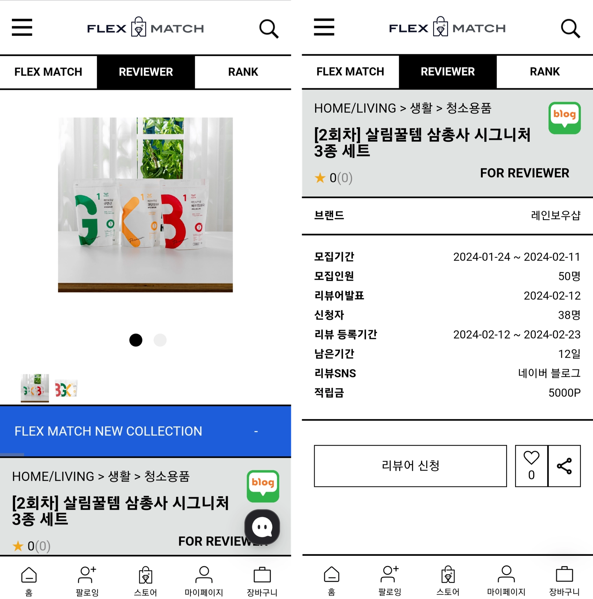 일반적으로 불리는 체험단, 캠페인, 리뷰체험단과 동일한 기능이며, 본인의 SNS를 이용하여 특정 상품 또는 가게의 홍보 글을 작성한 후 일정 적립금을 얻게 되는 기능입니다.