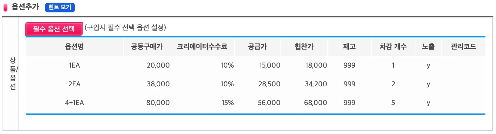 공동구매가 | 옵션별 판매가(공동구매가) |