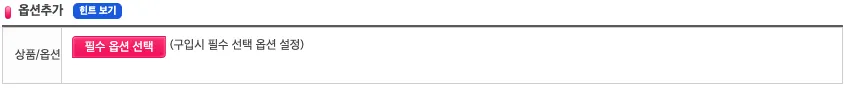 * 옵션은 세부사항이 저장되어있으며, [필수옵션선택]을 클릭하면 수정이 가능합니다. |