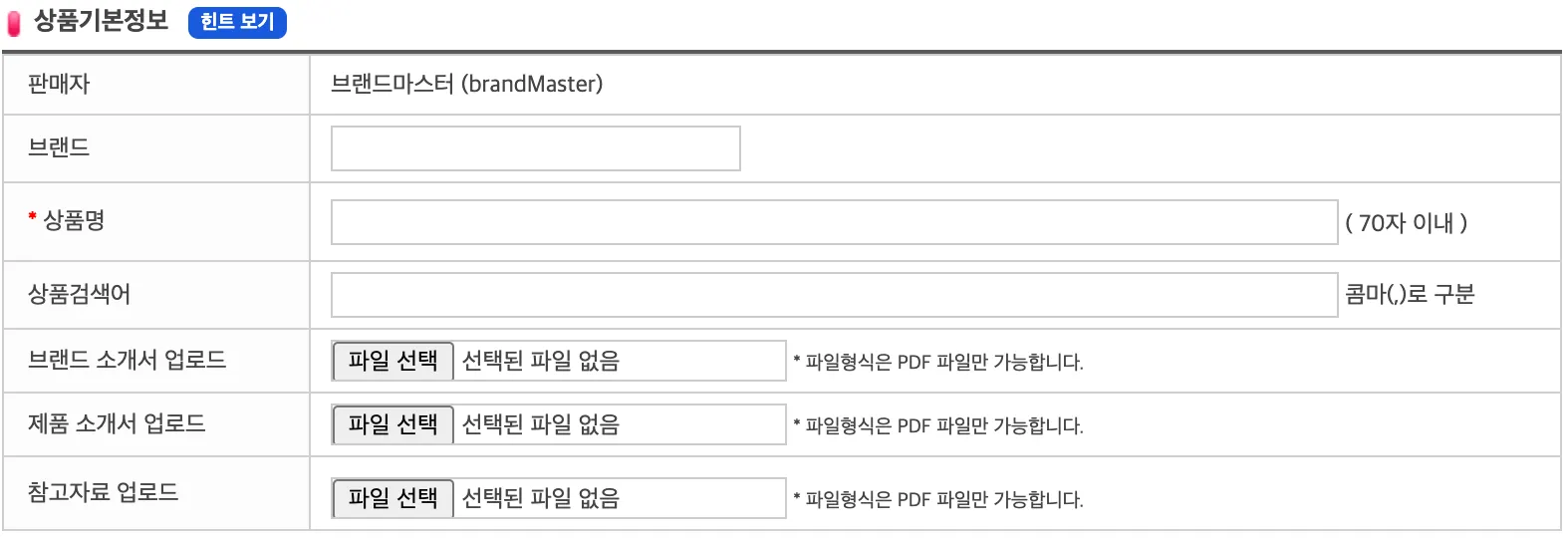 업로드 | 브랜드 소개서가 있을 경우 브랜드 소개서를 업로드 할 수 있다.