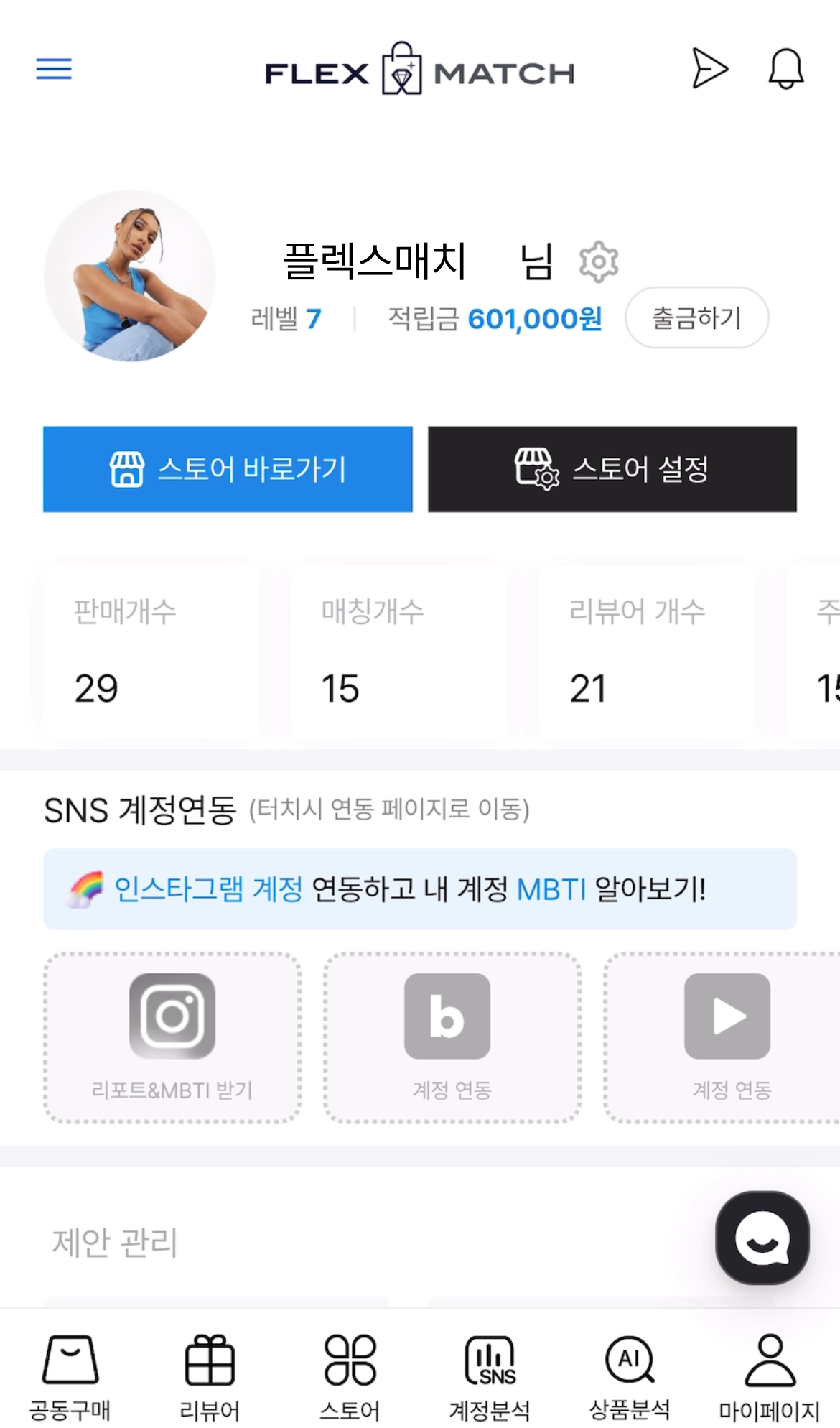 플렉스매치에 로그인 후 [마이페이지]로 이동합니다.