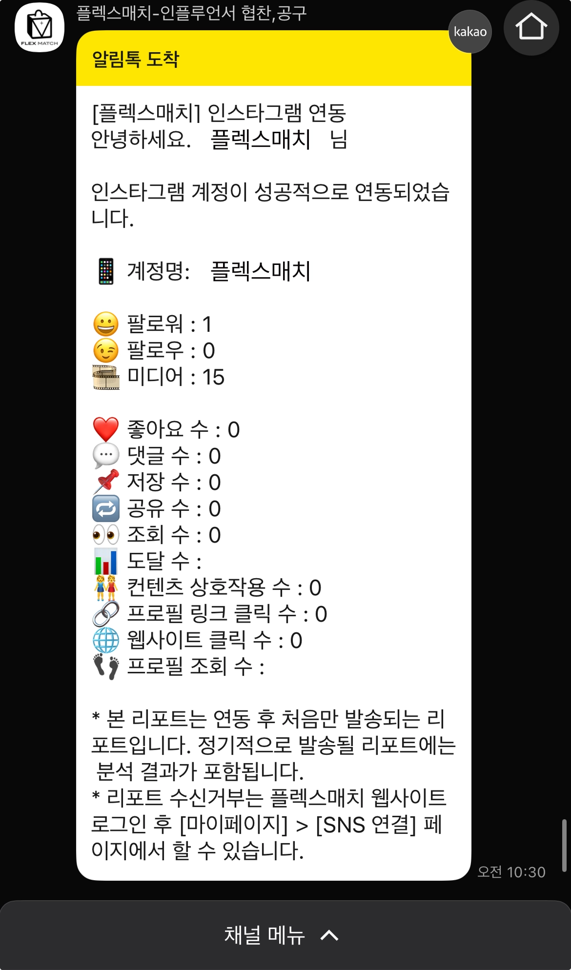 연동한 날부터 2일 뒤부터 데일리 리포트(매일)와 주간리포트(매주 월요일)을 받게됩니다