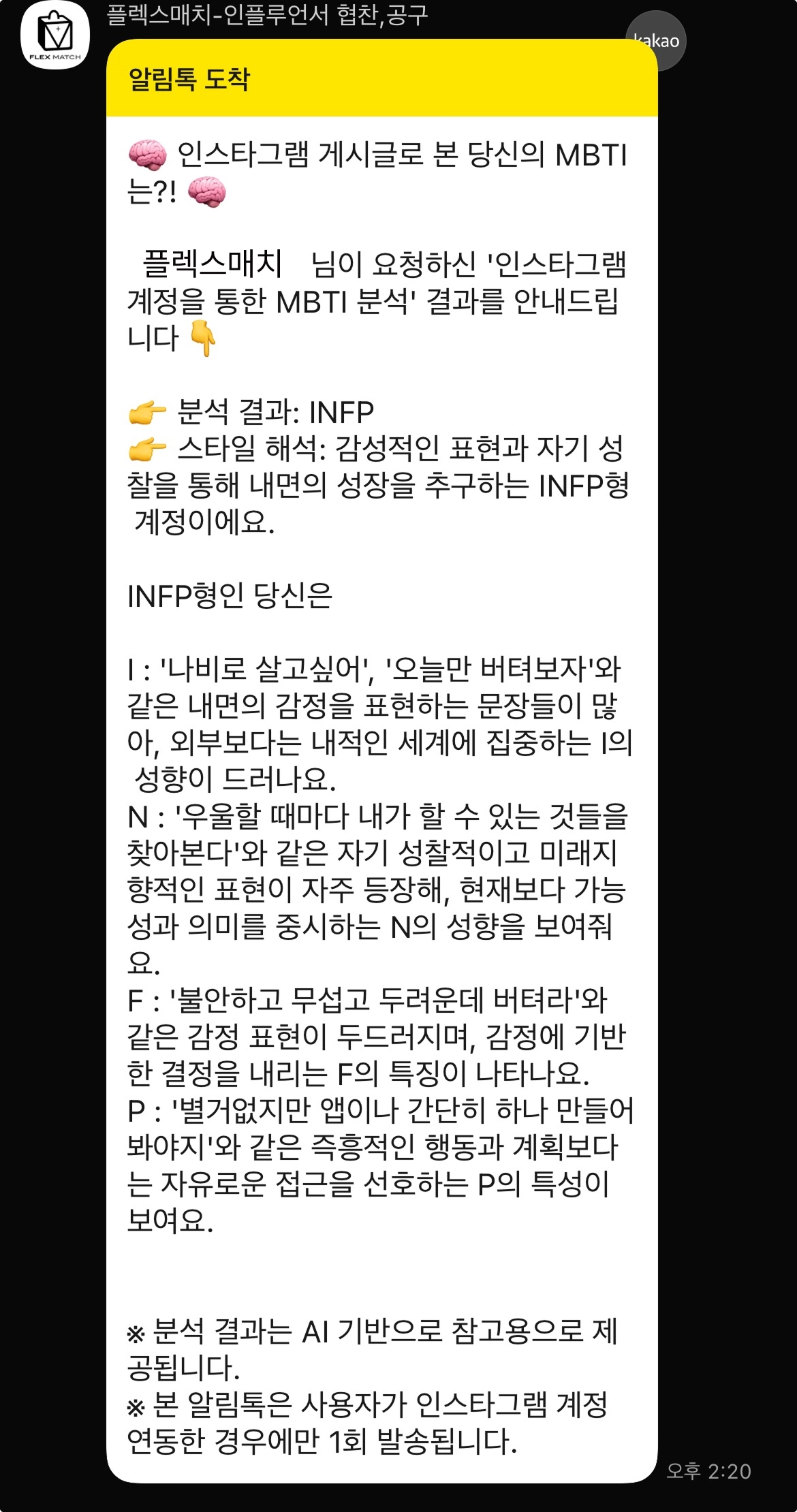1분내로 가입하셨던 전화번호의 카카오톡으로 리포트와 설문조사, MBTI 결과가 전달됩니다.