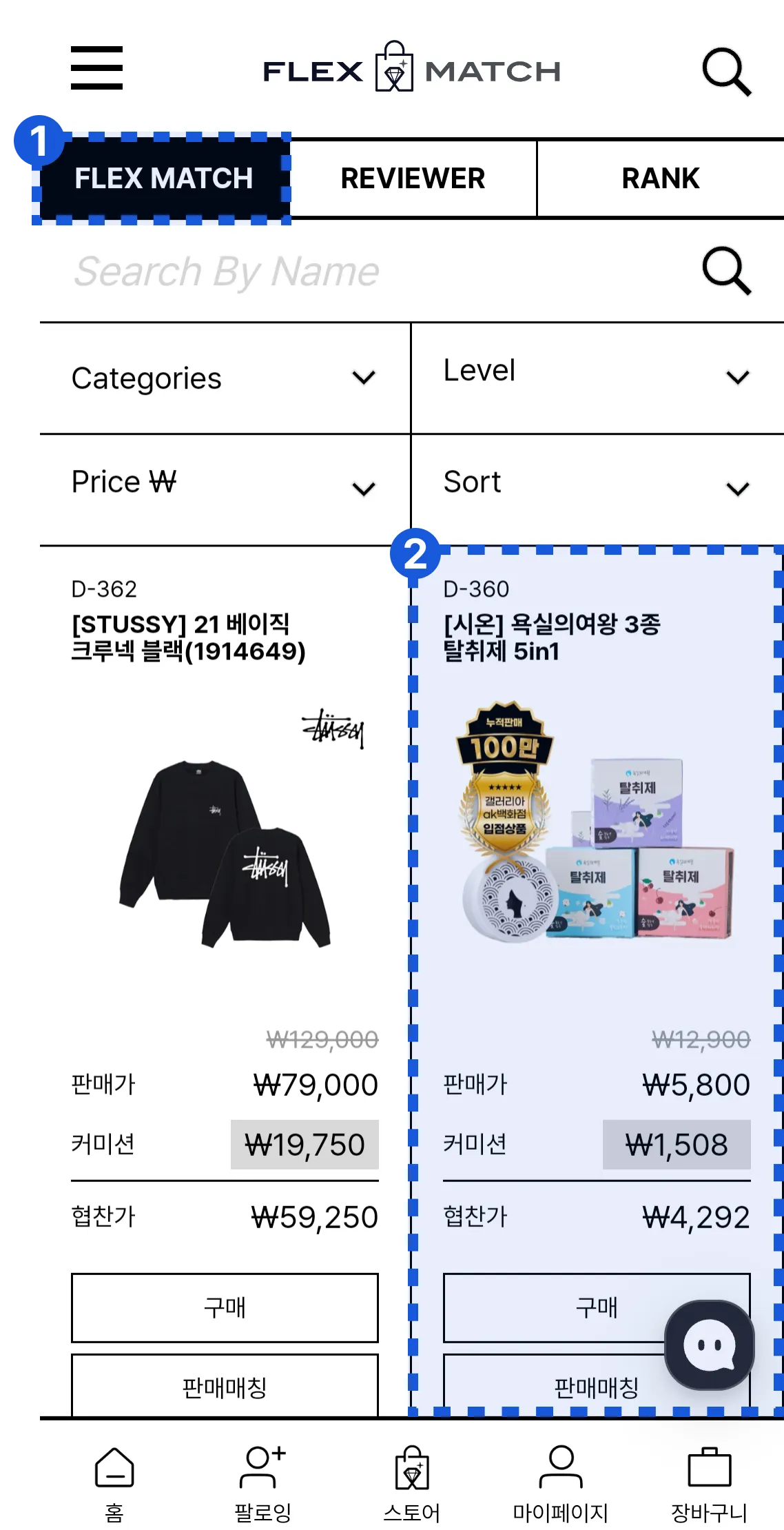 자유매칭은 본인의 레벨에 맞는 상품들을 누구나 즉시 매칭하여 판매할 수 있습니다.