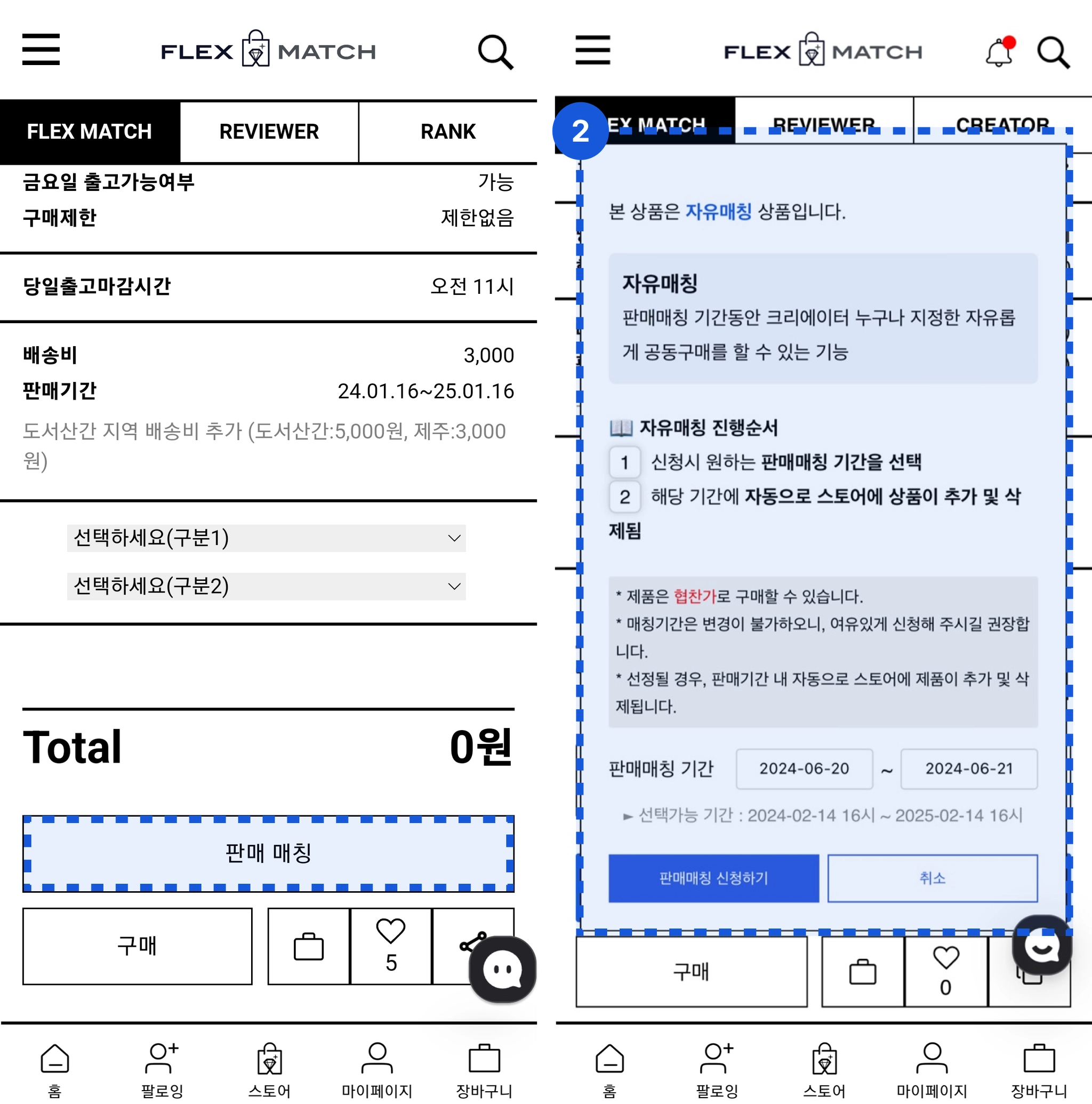 선택매칭의 경우 판매매칭 기간을 선택해야 합니다.