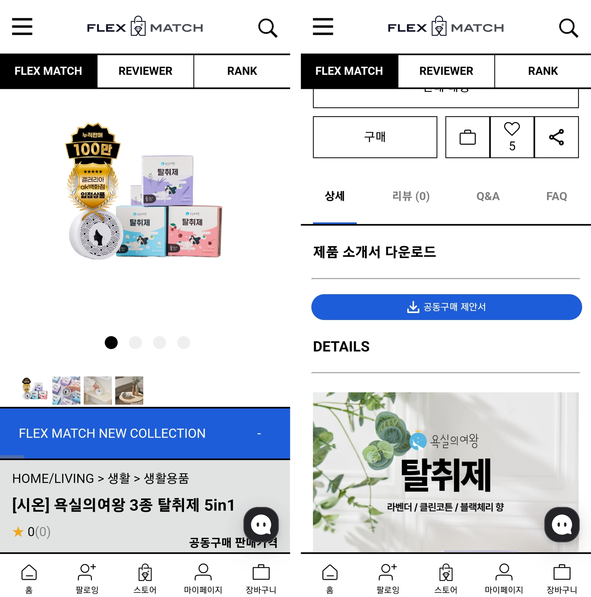 [상세] 탭의 [제품 소개서 다운로드] 에서는 “제품소개서”, “브랜드소개서”, “공동구매 제안서”를 다운받을 수 있습니다.