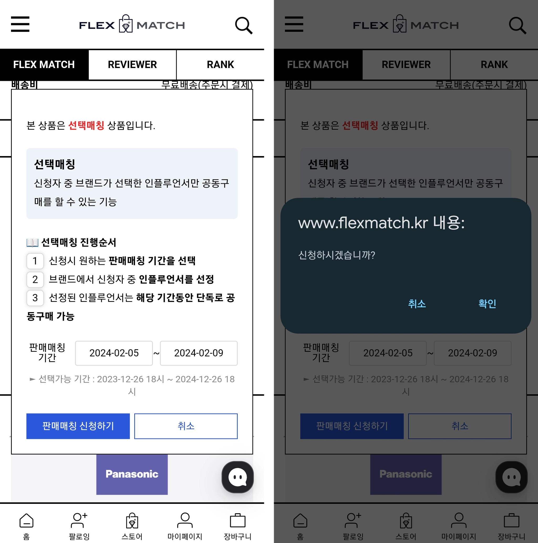 크리에이터 전용 샵인 FLEX MATCH에서 판매를 원하는 상품을 “매칭”하는 기능입니다.