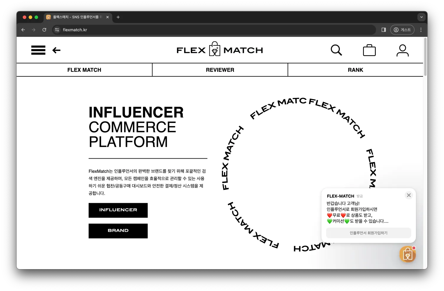 해당 버튼을 클릭하면 플렉스매치의 브랜드 제안서를 확인할 수 있습니다.