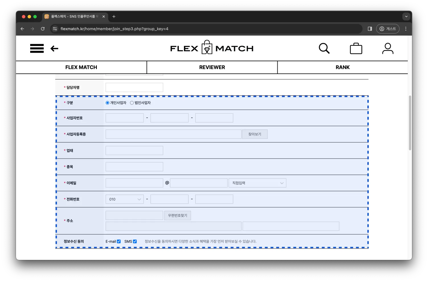 구분 | 사업자 구분을 선택합니다. |